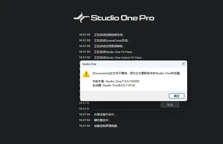 one7报错提示无法打开,也就是说pro8创建的工程文件是无法向下兼容的